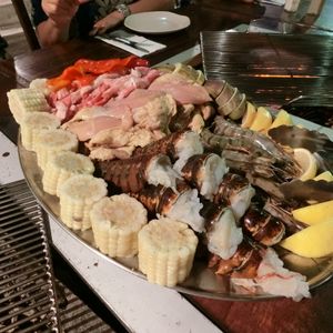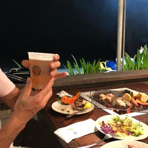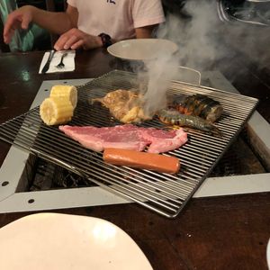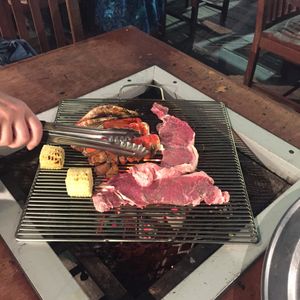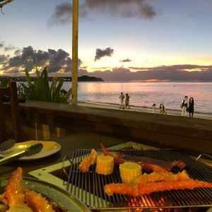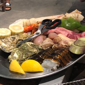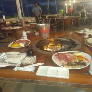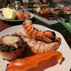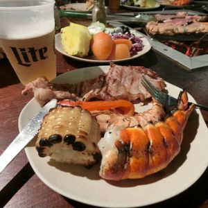 前回のグアムに続き2度目の利用。18時から利用しましたが、サンセットはもう少し早い方が良かったかも。ただ、ロケーションはいいところです。飲み放題も付いていて、コスパもなかなかいいです。ロブスターとカニは美味しかった!飲み物は店員さんがテーブルを回って注ぎ足しに来てくれます。とにかく暑かったので、結構汗だくだったのと、飲み物はちょっとぬるい気はします…。あと、炭火が最後の方になると落ちてきて、早めに焼いておかないと最後焼ききれなくなりました。