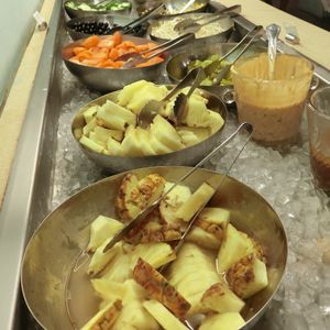 サラダドレッシングが2種類ありましたが、ピリ辛のドレッシングをお肉や海老につけても美味しかったです。