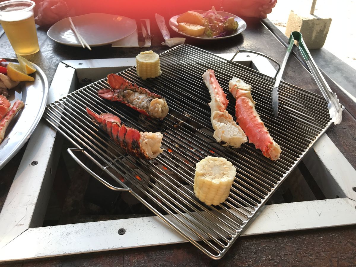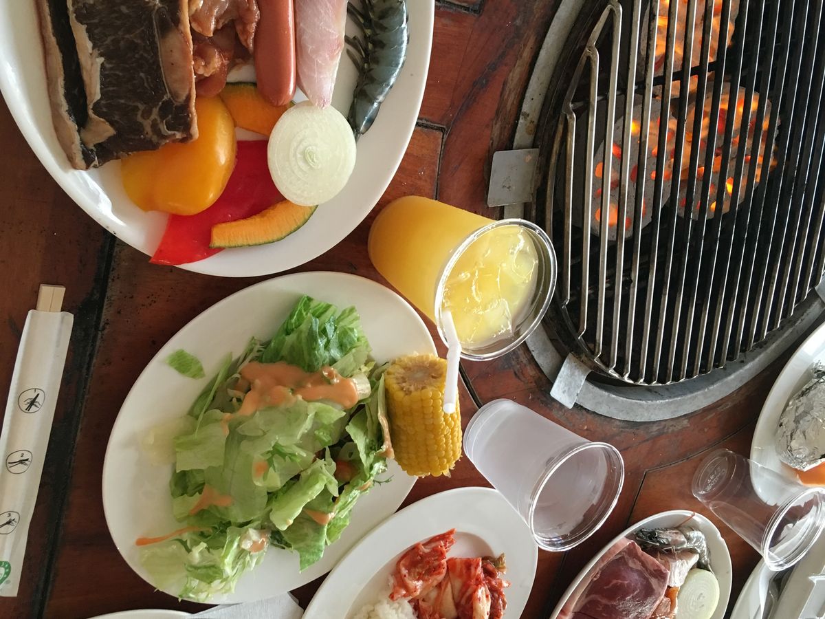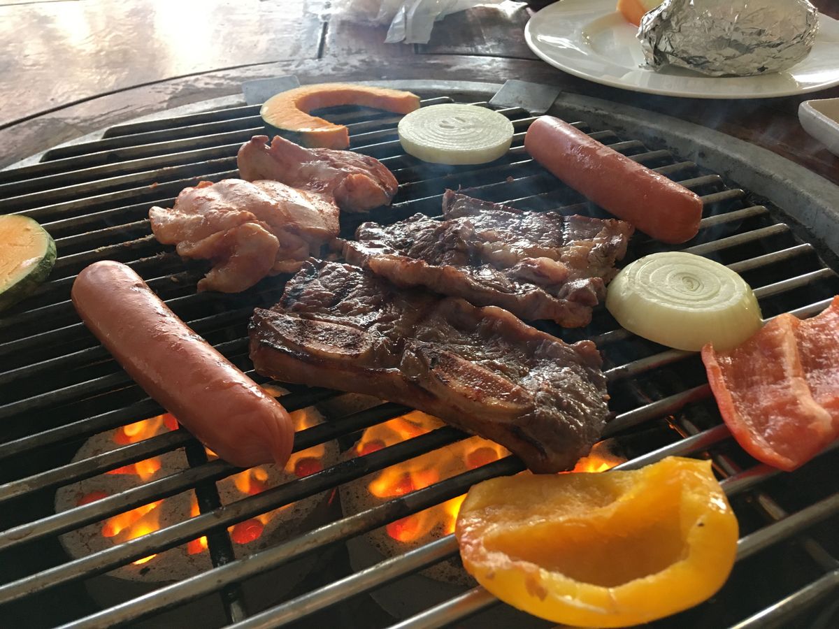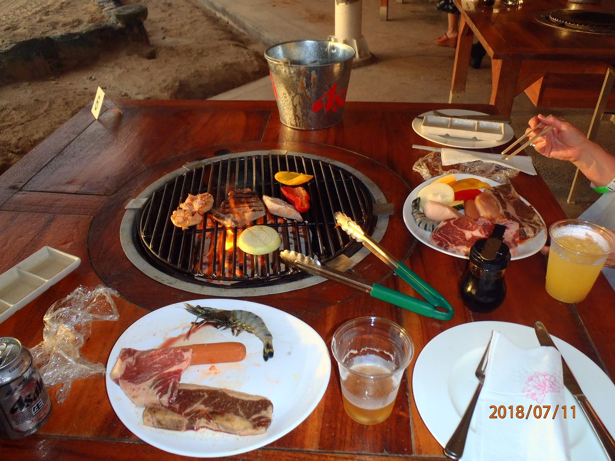 スタッフが少なかったのか食材が運ばれてくるのも遅く、ご飯はイマイチ、味噌汁は塩辛い、サラダは種類も少なく、魚介は新鮮なものでは無く冷凍のイヤな匂いと塩辛さでまともに食べられず、牛肉もスジだらけ、鶏は分厚過ぎて中々火が通らない、こんなに不味いバーベキューは初めてでした。