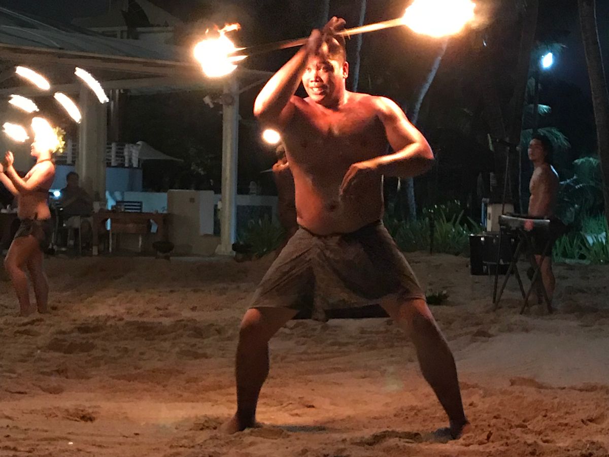 チャモロの人達が火を使ったショーで盛り上げてくれました。