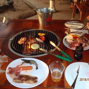 初めてのGuamで、BBQは3-4件のChoiceがあり、ここにしました。大人5名・子供2名で、まずまずの内容でした。やはり高い価格のコースとしてよかったと思いました。一番前のショーがよく見える席で、子供たちも大喜びでした。BBQの材料は、牛肉は量も多くよかったと思います。残念なのは、ロブスター付きと言いながら、ほんの小さなものしかなく、少しがっかりでした。材料の量は多く、若い人でないと完食は難しいかもしれません。会場が少し騒々しかったのもマイナスです。とはいっても、全体としては、まずますかと思います。