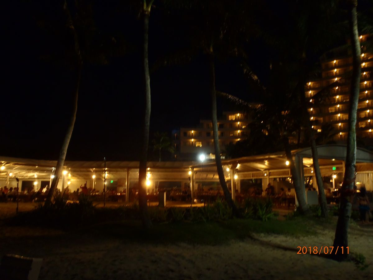 ビーチ側の席だったけれど、もう日が落ちていた時間なので暗くて残念でした。