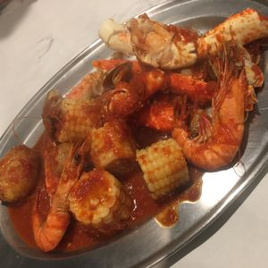味は思ったよりも普通でした。ライスは食べきれないほどで、とうもろこしとジャガイモでお腹いっぱいです。シーフードは思ったより少なく期待外れでした。