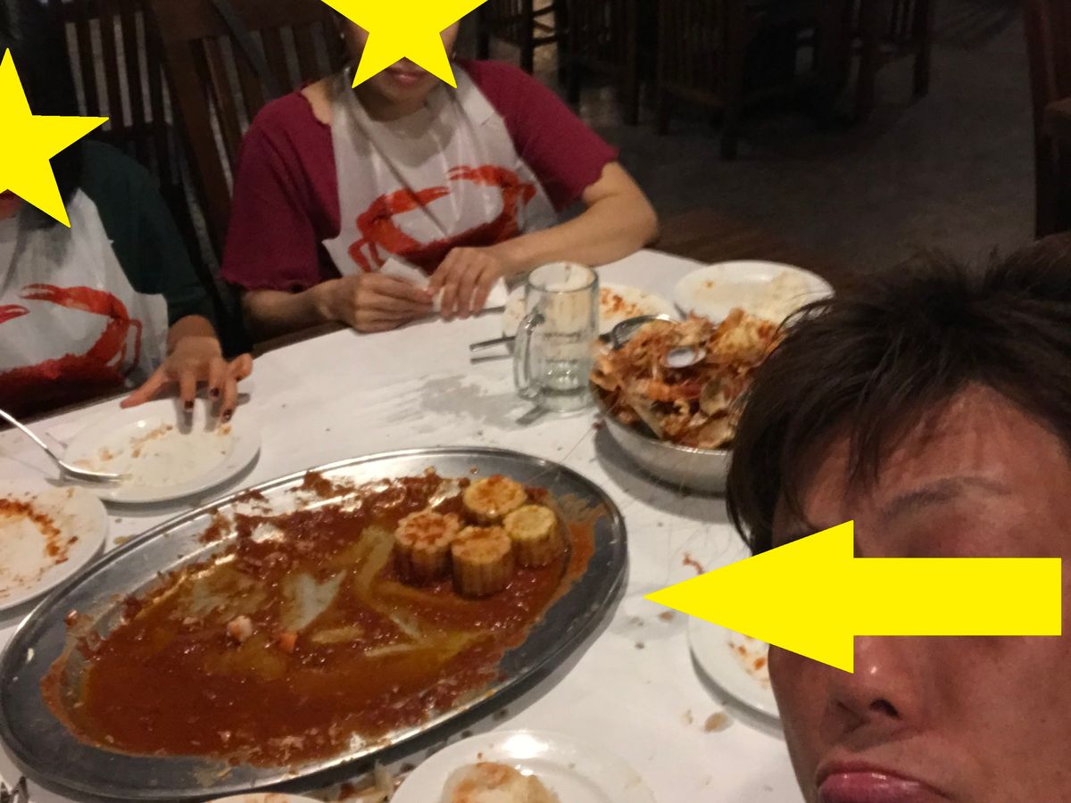 手づかみで豪快にカニやエビを食べる!