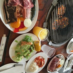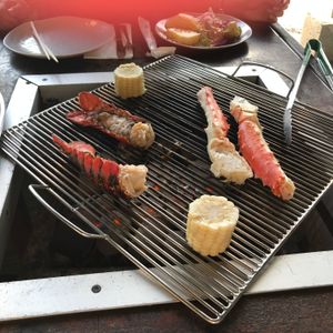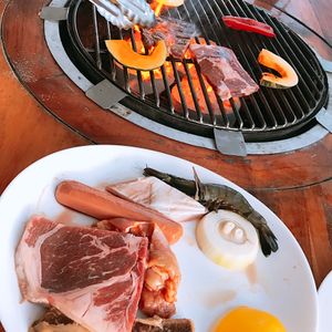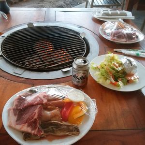 スタッフが少なかったのか食材が運ばれてくるのも遅く、ご飯はイマイチ、味噌汁は塩辛い、サラダは種類も少なく、魚介は新鮮なものでは無く冷凍のイヤな匂いと塩辛さでまともに食べられず、牛肉もスジだらけ、鶏は分厚過ぎて中々火が通らない、こんなに不味いバーベキューは初めてでした。