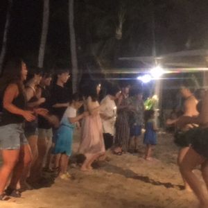 他のサンセットビーチBBQが予約取れず、ホテルニッコーさんにお願いしたので期待半分でいました。あいにくの雨でサンセットビーチも見れず残念な気持ちでしたが、笑顔で傘を差し出し盛り上げてくれたスタッフの方々のあたたかさで救われました。ダンスパフォーマンスも、すぐ近くで見ることができ、迫力がありました。少人数のためかアットホーム感はありましたが、緊張せずに食事が楽しめるため家族旅行の方にはおすすめしたいです。