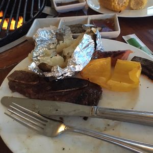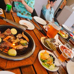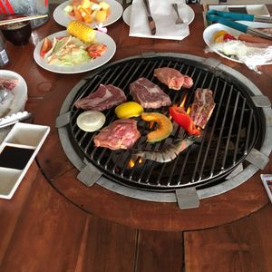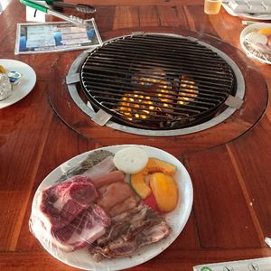 ビーチが目の前と言う最高のロケーション。お肉も見た感じは少なかったのですが、食べ切れないくらいでした。サラダバーもあり良かったと思います。味はまぁ普通でした。