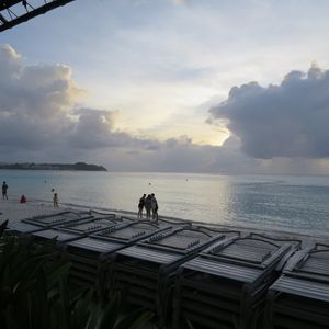 サンセット手前のビーチは、翌日のためのビーチベッドやパラソルが積み上げられており少し残念でした。