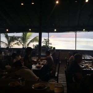 今回三世代の家族旅行のフィナーレにこちらを予約しました。雲が多かったものの、ギリギリ夕焼けも見れ、さっさと食べ終わる子供たちはそのままビーチへ遊びに行けます。