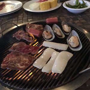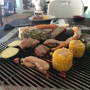 海沿いのバーベキューでそのまま海に行けるので、家族にぴったりだと思います。お肉やシーフードも美味しかったです。ただ、味付けが基本的にも塩胡椒なので、たれも何種類かあると嬉しいのと、野菜の鮮度が少し気になりました。