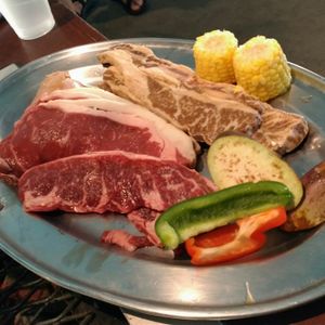 少し慣れない私たちはお肉を食べてる感が強くて辛かったけどめちゃくちゃ美味しかったし良い体験ができました!そのほかにコーン、ピーマン、ナスがプレートに乗って出てきました。とても美味しかったです。