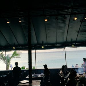 海はすぐ目の前で、席からそのまま砂浜に出られます。お客さんは比較的に若者が多くとても賑やかで夏の雰囲気を味わいたい人にはもってこいのお店だと思います。