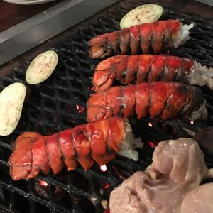 ロブスターテールでよ。身がプリプリしていて好評です。食材が足りないお客様にはサイドメニューもございますので、ロブスターだけ追加(別途料金)ということもできますよ。