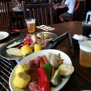お肉は日本で食べる焼肉とは違い、大きく豪快さがあり、とても満足できました。サラダの野菜も新鮮でおいしかったです。ドリンクもなくなったらすぐに注ぎ足してくれて、とても気が利いていました。悪いところは外だと少し暑いことですが、それもまた夏を感じられるのでいい思い出になるとおもいます。