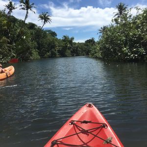 一人で参加。当日にほかの参加者はおらず、ガイドさんと2人きりでのツアーでした。カヤックは一人で乗りましたよ。カヤック挑戦自体が初めてだったので、その点はすごく楽しめましたし、自然豊かな川を上っていくのはとても刺激的な体験でしたが、特別見どころがあるわけではありませんでした。