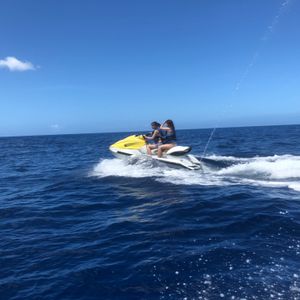 友達と2人で参加しました。まず自分たちのホテルまでの送迎があったのでとても助かりました!海に着いたらすぐに良いカメラで写真を撮ってくれました!すごくフレンドリーな方々ばかりで、データを貰うのは有料でしたが値引きしてくれてかなり安く買えました!写真が終わったら、ジェットスキーに乗って運転の練習をしました。そしていよいよ海の奥まで行って120分駆け抜けました!参加する前、30分のコースと迷ったのですが、絶対120分の方がいいです!私たちは2人乗りだったのですが途中で交代もできたので両方楽しむことが出来ました!また途中で写真タイムもあったので良かったです。すごくスリル満点で長距離でもあっという間でした!いい思い出です!!機会があればまた参加したいと思います!