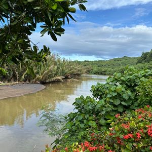3人で参加しました。カヌーは2人一組のため、1人は他のグループの方と一緒にのりました。カヤックは遺跡まで。途中、カニなど自然の動物を数種類見ることができました。遺跡につくと植物の説明や昔の住居の作り等を見学と記念撮影。その後、火おこしや葉っぱで作った小物など昔の暮らしを見学。何名かは体験もしていました。ここで船のツアーの方達と合流でした。ランチを食べた後は動物等を見学しながら歩いて移動。葉っぱでエンゼルフィッシュをつくる体験を行い、全員船で元の場所に戻りました。川の水が思ったより茶色く驚きましたが、カヌー体験は楽しかったので小さなお子さんが居なければ船のツアーよりカヤックをお勧めします。ランチ、美味しかったです!
