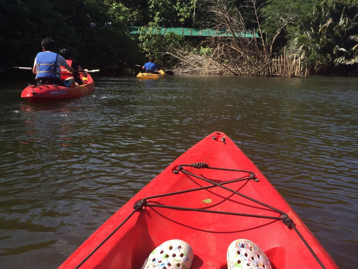 ホテルへのピックアップはリバークルーズの人たちと一緒でした。5人で乗り合わせでしたが、カヤックをしたのは私たちだけでした。のんびりカヤックを漕いでジャングルツアー。嫁はカヤック初体験でしたが二人乗りのせいもあって難なく乗りこなせていました。ランチはBBQ弁当!?みたいな感じ。可もなく不可もなくな味でした。ガイドのダーリンBさんもとても楽しい方でした。嫁がサングラスを落としてしまった時には潜って探してくれました。残念ながら見つかりませんでしたが。皆さんもお気お付け下さい。帽子は必需品!繊細な手を持つ人は手袋も必要かもです。カヤックから落ちることはまずありませんが、お尻は濡れる可能性大ですよ。海とは違った楽しさ発見です。