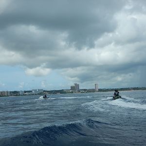 初めてのグアムで初めてジェットスキーに乗りました!送迎付きでホテルまで迎えに来てくれるので、とっても楽ちんでした!そして、ドライバーさんがイケメン☆笑 途中すごくキレイなポイントでジェットスキーを降り、スノーケルをさせてくれてキレイなお魚の写真も撮れました♪元々はジェットスキーだけのプランでしたが、まさかのサプライズで嬉しかったです!スノーケルも貸してくれて10分〜15分程の時間でしたが、キレイな海で泳ぐことができて、貴重体験ができました♪なかなか長い時間運転ができるので、ジェットスキーを思いっきり堪能したい方は、このプランがオススメだと思います!途中で運転も自由に変われるので、その点も良かったです!最初はネット申し込みのオプショナルツアーは本当に予約出来ているのか…ちょっと不安でしたが、他のオプショナルツアーに参加した方のレビュー等を見て、評価が高かったのでドキドキしながら申し込みしました。今回こちらで参加して本当に良かったです!そして安い!笑 コストパフォーマンスが最高でした笑 また参加したいな!と思えました!