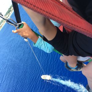 パークだけでも50ドルほどかかるので3点セットで95ドルは安いです。ジェットスキーに乗りながら前を走る家族の写真を撮っていたら、現地スタッフさんがカメラを渡して!とジェスチャー。海の中でずっと立ってカメラを構えて次々と通過する私達家族4人、一人一人写真を撮ってくれたのです。それも写真はすべてベストショット!とても嬉しくスタッフさんの優しさに感動。パラセールは沖縄でのパラセールより高度も低く飛行時間も5分位と短くちょっと残念でした。2人だと横に並ぶタイプではなく前後にくっついて飛びます。移動時間も合わせて1時間くらいでした。
