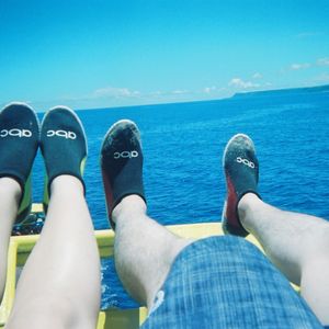 行き先コースはアグエコーブコース、片道40分くらい。朝方に観光で行った恋人岬を今度は海から眺め、その先のサンゴ礁のある浅瀬で少し海に浮かんで休憩。