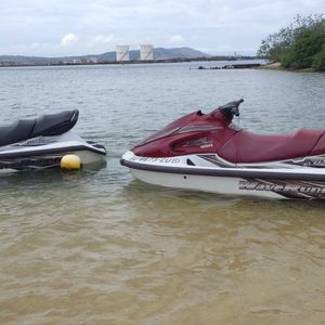 ジェットスキーは決められた赤いブイを反時計回りに回るのは良いのですがウォーターパークに隣接している為かジェットスキーの同回周に小さな子供とお父さんの2人乗りが居てスピードが非常に遅く、追い越し禁止の為スピードを出せず楽しく有りませんでした。
