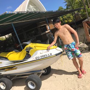 浜辺から海を眺めることは簡単にできますが、その逆で大海原からグアムの浜辺を一望するという貴重な体験をできました。彼女もすぐに運転に慣れていて、とっても楽しそうでよかったです。1時間ほど運転し浜に戻って着替えていると、送迎してくれた方がご厚意でビールをくれました(笑)暑い日差しに喉も乾いていたので、最高においしかったです。またグアムに行った際は利用したいと思います。