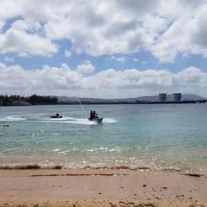 先輩と体験させていただきました!現地の方は日本語が達者で、日本のお笑いやJPOPの歌を口ずさんで楽しませてくれました。シュノーケリングでは少し水が濁っていたけれど多くの鮮やかな魚を見ることができ、ジェットスキーでは実際に自分がハンドルを握り運転することができました。大満足です。バナナボートがもう一つの結構ハードなアクティビティを選択できます。浅瀬は水の透明度も高くとても綺麗です。ロッカーと簡易シャワー、こういしつも備えてありました。帰り際に現地の方が貝をプレゼントしていただき非常に嬉しかったです。
