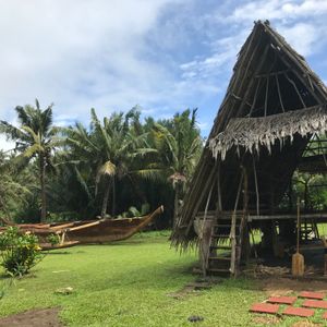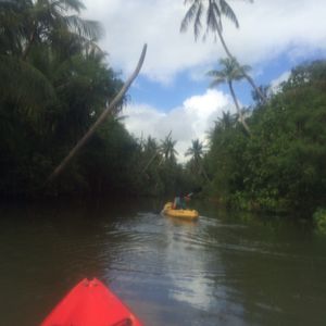 途中カヤック降りて、チャモロの住居の前で昔のパドルを持って写真を撮ったり、さくらんぼを食べたり、ハイビスカスをプレゼントしてくれました!