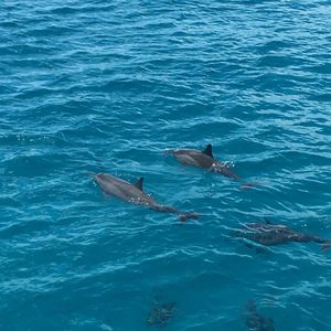 イルカウォッチングは、バスで移動した先からボードで更に移動、見える確率は9割とのことでしたが、水面を跳び跳ねるイルカの群れに何度も遭遇し満足でした!
