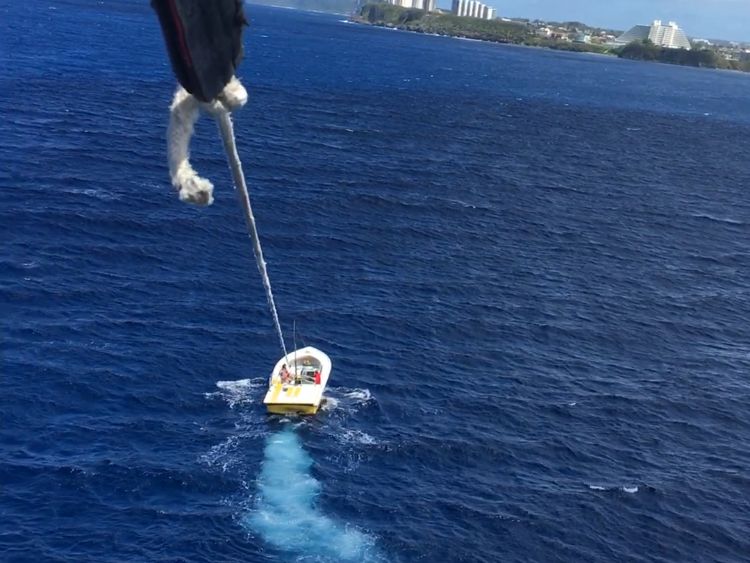 パラセーリングもほとんど説明がない中、急に金具を付けたかと思ったら空へ…