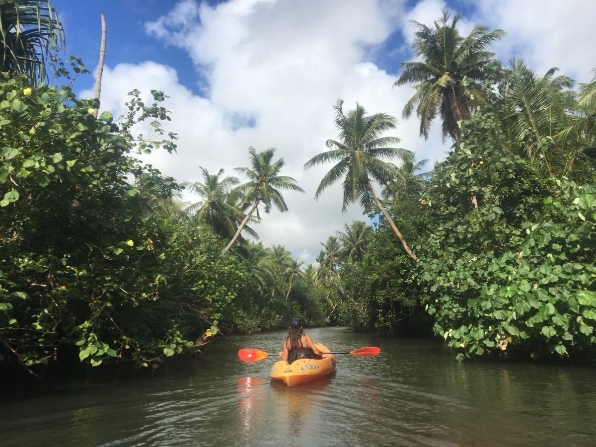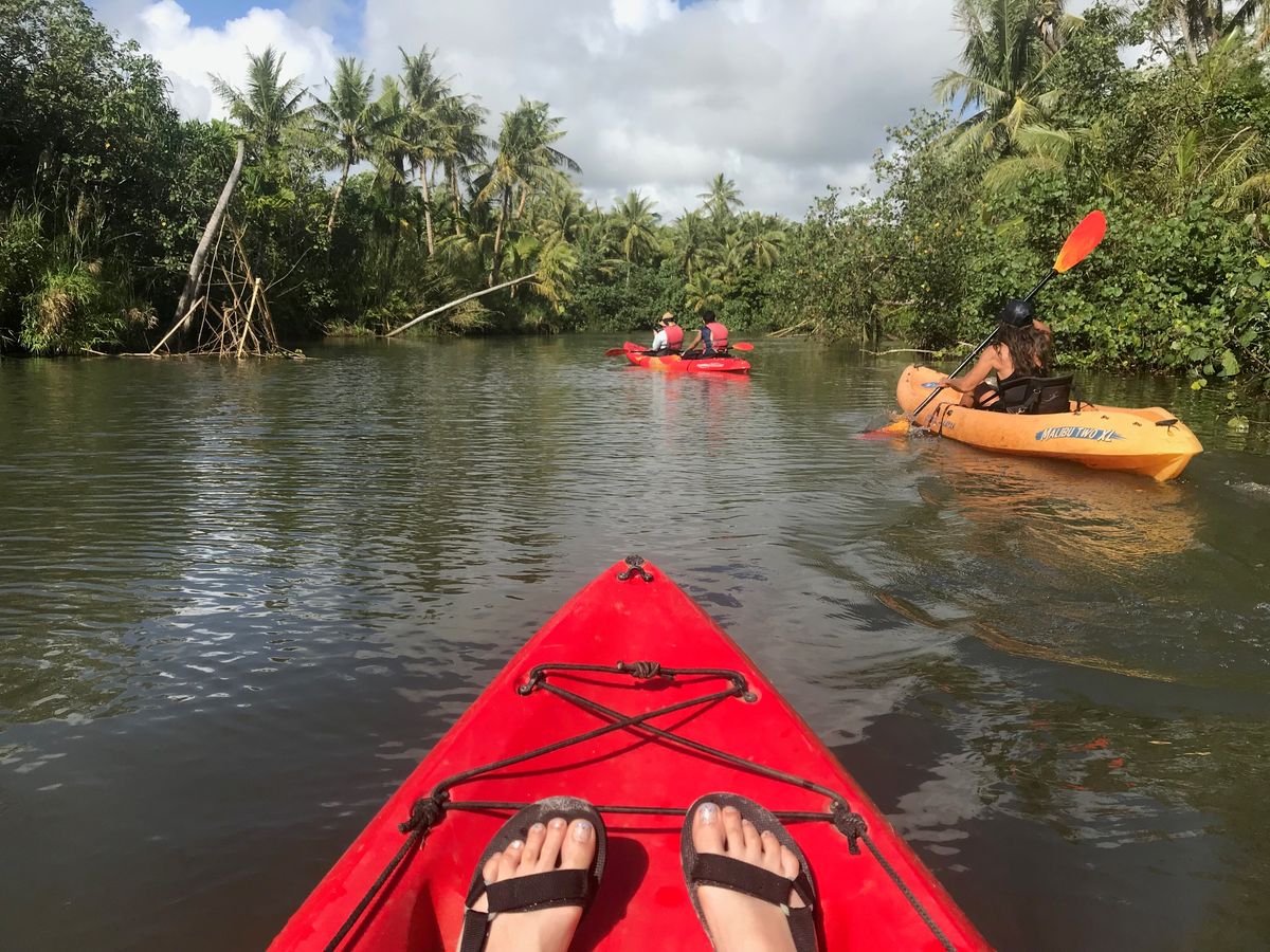 グアムといえば、ビーチと買いものしかないイメージでしたが、海は見飽きたなぁという方にはとてもおすすめです! うっそうと茂ったジャングルの川を自力でこいで進んでいくのは、アドベンチャー感があるしし、途中に立ち寄る場所では、チャモロ族の文化にも触れることができます! また、個人的に面白かったのは、戦後20年近くジャングルに隠れていた横井さんが発見された場所らしく、その過酷さを肌で感じられます とはいえ、川は穏やかで、カヤックも難しくありませんし、女性やお子さまも十分楽しめると思います 女性のガイドさんもとても親切で明るい方でした 難点としては、ジャングルなので、仕方のないことですが、ランチの際はハエや虫が大量にいますので、虫除けスプレーは必須です グアムに来たらまた参加したいと思います!