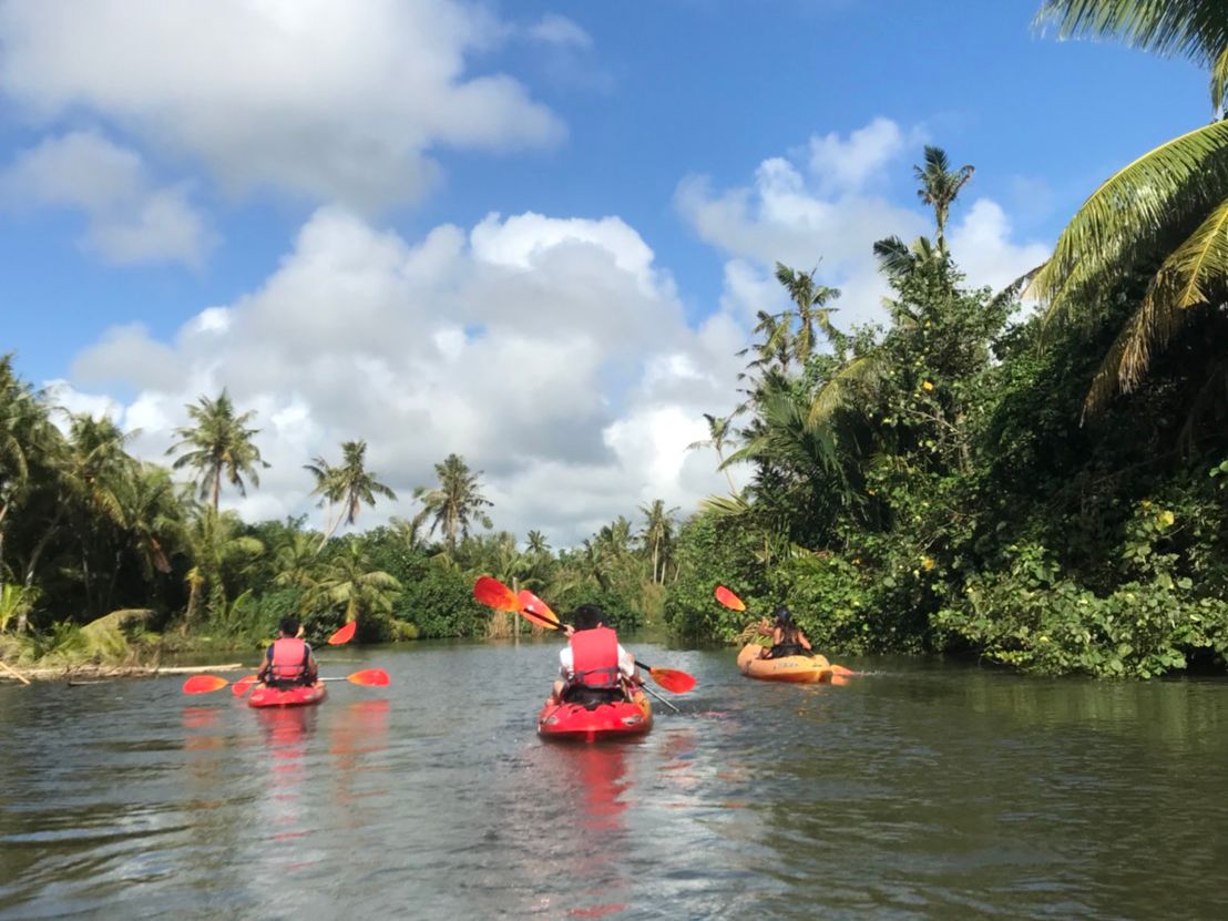 昼食後はチャモロ村から再びカヤックに乗り込み、出発地点まで戻ります。最後にスムージーが用意されてあり、後味スッキリで疲れた身体に染み渡りました。大自然を目の前にし、日常を忘れ童心に返えれる貴重な経験となりました。