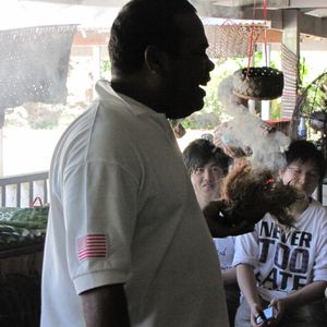 その後チャモロ文化に触れる(火起こしなどを見る)時間があり、葉細工のようなお土産をもらってかえってきました。