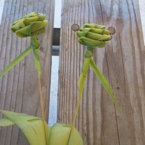 参加者全員に、ヤシの葉で花や、ヘアーバンドを作って頭に飾ってくれました。