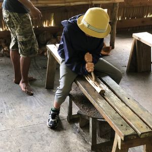 素手素足でヤシの木に登り、実を取るパフォーマンスや、日本式と異なり一瞬で煙が出るハイビスカスの木での火起こしなど、とても興味深かった。