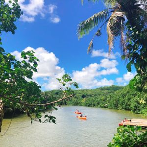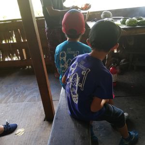 想像していたリバークルーズより楽しかった気がしました。船はアマゾンっぽい雰囲気の中をゆっくり進んでいき、スタッフさんたちがあれやこれやと楽しませてくれて、あっという間にチャモロ村に到着しました。古代遺跡や熱帯植物、ラッテストーンなどをみたあと、火起こし見学をして、ぬかるんだ道を進むと動物たちがお出迎えしてくれます。中でも水牛に乗る事が出来る体験もありました。スタッフの方がバナナの葉でカゴや団扇を器用に作ってくれたりもしました。最後にみんなでバーベキューランチをいただいてきました。グアムの自然と文化に触れることができるツアーでした。
