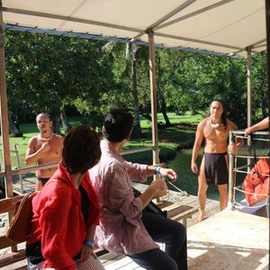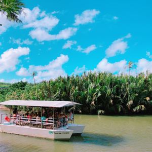 初めてリバークルーズに参加しました。初めは正直あまり期待をしていなかったのですが、参加してみたら意外と面白いツアーであっという間に半日が過ぎてしまいました。船の中でスタッフの方々があれこれ楽しませてくれたし、ヤシの葉細工をプレゼントしてくださいました。チャモロ村に行ってからも、火起こしのデモンストレーションやヤシの実割り体験、水牛に乗る体験をさせてもらいました。昔のチャモロ人の家やラッテストーンなど古代遺跡や伝統文化にも触れることができたし、熱帯植物も楽しめました。昼食のバーベキューはお肉はまあまあ美味しかったのですが、ご飯がちょっと。。かき氷も期待はずれでした。