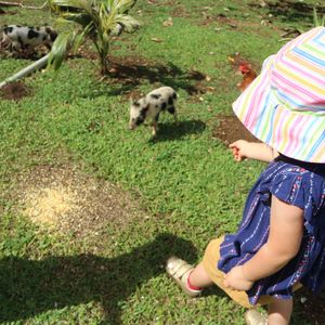 小さな犬や豚、ヤギや鶏に餌をやれたり触れたりしたので娘も喜んでいました。