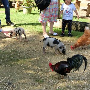 餌を食べてる豚や大きな鶏もいて面白かったです。