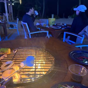 夕方の海を見ながらバーベキューができて最高でした。サラダ、ご飯、味噌汁、飲み物が飲み放題で食べ応え抜群のお肉と海鮮類がたくさん乗ったお皿がボリューム満点でした。