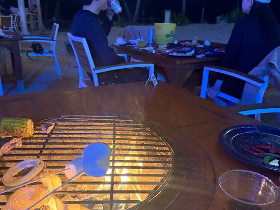 海を見ながらのバーベキュー最高でした。大きなお肉やシーフードなど食べきれない食材をみんなで楽しく頂きました。最高の思い出になりました。残念ながら、曇りでサンセットが見れませんでした。