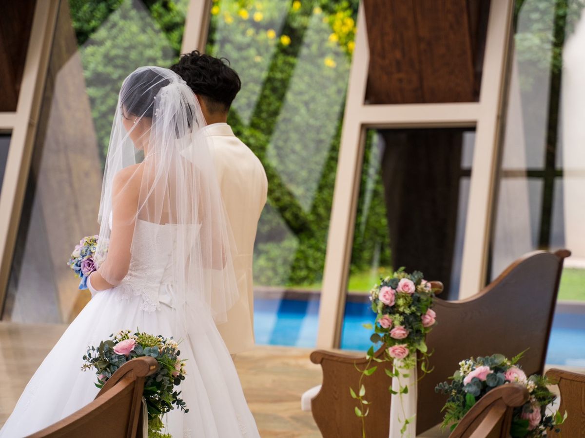 台風以外は、雨が降っていても、だいたいできるそうです。実際、私達の時も、ビーチ撮影は雨で中止。その代わりに、ホテルのラウンジやロビーで撮影。外に出てみると、晴れていたので、ホテルのビーチで追加撮影。という感じでした。