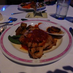 サプライズメニューで注文していきました。到着後予約確認が必要と記載されていたためホテルに連絡しましたが、予約が本当にとれてるのかやり取りの中では曖昧で、もう一度申し込み内容をこちらから伝えるといった状況でした。注意が必要かもしれません。会場は日本人でうめつくされていました。メニューは非常に満足のいく内容でお肉も美味しかったです。ピーマンが甘くておいしかったです。食べきれないくらいあります。他の人が言われているように網が粗く、お肉や野菜が落下してしまいました。それと火が弱く、片方の網は焼けなくなってしまいました。満腹だったのでよかったですが・・・。これはグアム全般で言えることかもしれませんが、ビールはあまり冷えていません。バイキングメニューもありますが、最初に用意してある分で満腹になります。後半のショーは大変満足でした。観客参加型だったのでわりと沢山の人が出て行って踊ってました。日本人が好きな宴会のような盛り上がりでしたね。ショーのあとは自由にキャストと記念写真がとれるので良かったです!