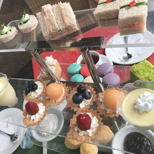 マカロンやプリン、スコーン、タルトどれも美味しかった。見た目も可愛く、オススメです。コーヒーや紅茶から飲み物は選べますが、ティーポットで頂けるか、飲み物はおかわり自由にしていただけると尚有り難いです。甘いものが大半を占めるので、喉が乾きます。。。