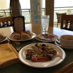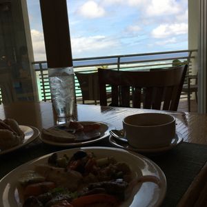 2月4日最終日のランチに利用しました。案内された座席は真っ青な海が見渡せる素敵な席でした。ピザは注文すると焼きたてが運ばれるスタイルです。水とアイスティーは飲み放題。ビュッフェ形式ですが品数は豊富でお腹いっぱいになりました。店員さんもよく気遣って下さり、快適でした。