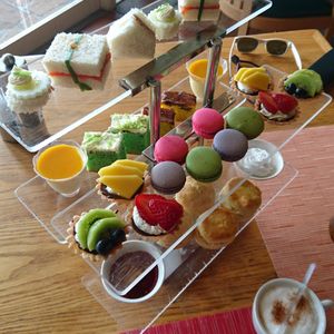 昨年の10月に来店。綺麗な配色とあまり甘くない美味しさが忘れられずに、半年後の5月に再び来店しました。前回同様綺麗な配色とお洒落なセッティングにテンションもあがって、写真を撮りまくりました。そして甘いものを受け付けない私が初めて美味しいと思い完食したマカロンを一口。ん〜!!固まってしまいました。どの店にもある、皆様が知っているあの甘い甘いマカロンでした。一口で完全にギブアップしてしまいました。甘いものが大好きな妹さえ私の分を食べれないほど甘い甘いものでした。パティシエの方が代わられたのでしょうか?他のケーキも甘くて、普通のアフタヌーンティーでした。初めて見つけた甘すぎないスイーツセットだったので、妹より楽しみにしていただけにとても残念でした。スイーツ好きの方々には良いのでしょうが、私達には3度目はもうありません。たった半年前なのに本当に残念です。