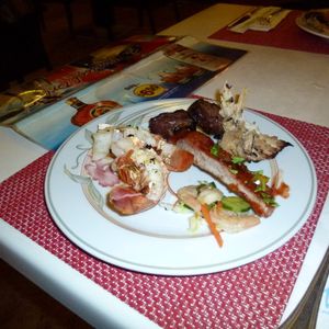料理は期待通りおいしいお肉やえび、おすしもありました。