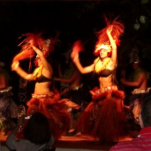 ショーは、女性ダンサーの腰振り速度にビックリ!3人で腰につけた花を撒き散らして踊るのが圧巻です。ファイヤーダンスも大迫力です。側を通るだけで熱気が来たので相当熱いと思います。なので棒を落としてしまったり、火が消えてもご愛嬌。後半は客席から何人か舞台に上げて躍らせていましたが、知らない大人を見てもつまらないので、子供がいる席は子供を上げてほしい。うちの子供は退屈していました。最後に入口で撮った2Lの写真を15ドルで売ります。