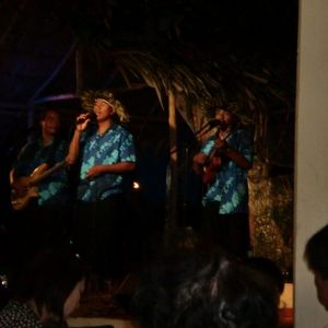 高齢の両親と3人で参加。雰囲気よくて年齢関係なく楽しめます!ショーが始まる前に各テーブルにダンサーが回って葉っぱでネックレスを作ってくれ首にかけてくれるサービス。伝統的なファイアーダンスにポリネシアンダンスショーを満喫。私もステージ上に誘われてノリノリで踊って楽しみました。食事はお肉は固かったけどロブスターは美味しくサラダも数種類ありデザートもあり、ビール飲み放題、飲まない人はアイスティー。ムード満点でした!送迎付きで有り難かったです。
